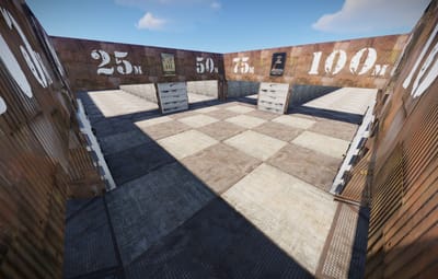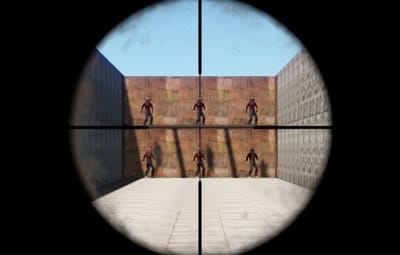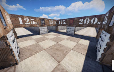 The arena is designed for training shooting at enemies located behind barriers, in the room and etc.