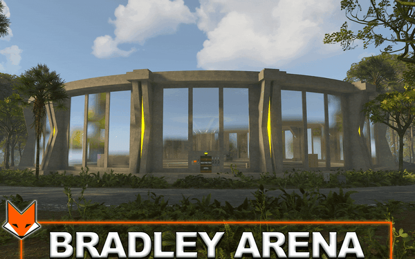 Bradley Arena is a ready-to-go prefab to add to any of your maps using RustEdit. Several red access cards are required to enter the arena, where players can fight three bradleys. If someone is inside the arena near the shelter, the entrance is blocked. After the player enters the arena, a shelter from the bradley appears, which will stand for 25 minutes, so players will not be able to fight with the bradley several times after entering once. And there are also a few crates to hack, and a few regular ones.