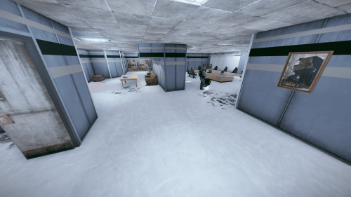 Counter-Terrorists can enter the offices by the front entrance, back hallway or through the glass windows.