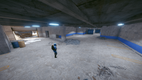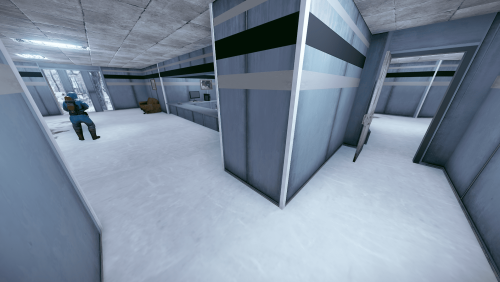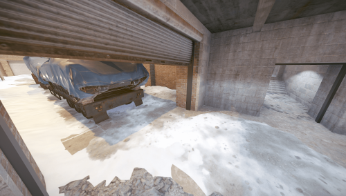 Counter-Terrorists (CT) spawn zone is in a parking garage while the Terrorists are inside the offices.