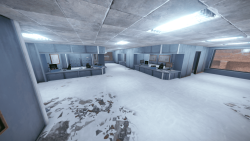 A remake of the OG cs_office map and it is set in the winter in a office building with parking areas and outside yards.