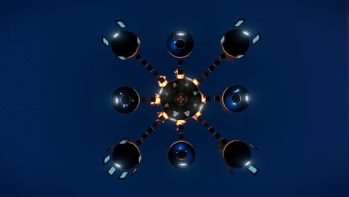- 2 side islands, one with a big portal in the center and one without. Both have portal sockets around the edge