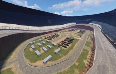 An massive arena monument built for both looting and driving! The monument has both green and red keycard rooms, in the vip lounges theres also a burn button which will turn on teslas underneath each side of the track to intimidate those that could be driving there. The arena may be big and contain alot of prefab counts but you will NOT feel any loss in performance