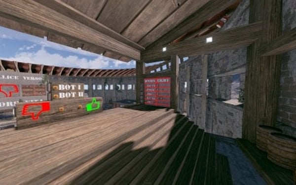 - I thought that 2 teams would not be enough, and added 2 more exits "Bot1" and "Bot2", there you can spawn bots and open the doors for them to enter the arena.