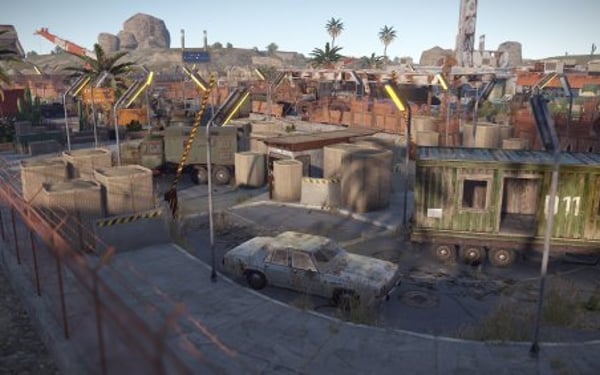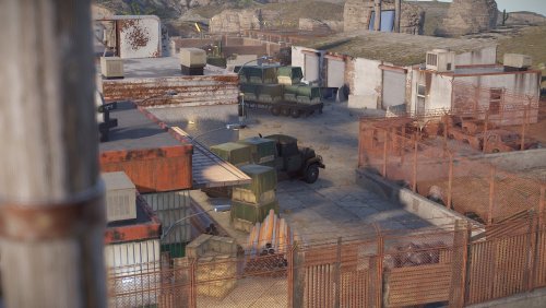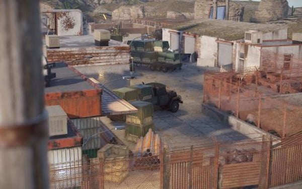 1-between that truck, car and checkpoint