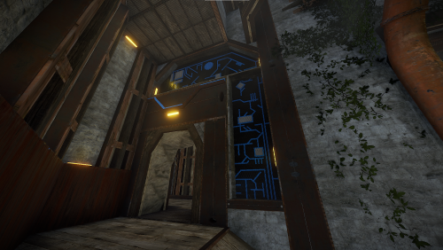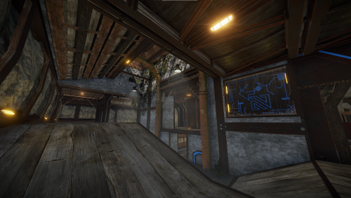 This arena comes in 2 styles: Tech and Overgrown. The tech version sports an IO-circuit like feature wall, where the Overgrown version will stick closer to the original map with roots/ plants crawling through the walls.