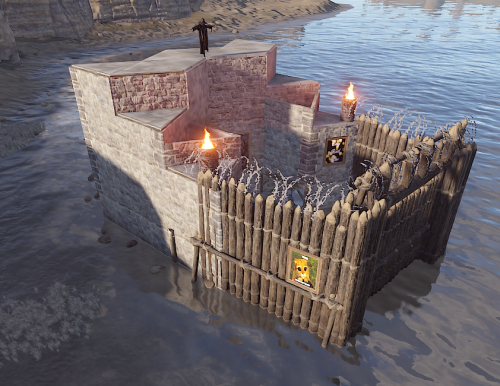 There are simple raid bases like you would see on a normal rust server.