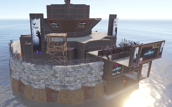 There are simple raid bases like you would see on a normal rust server.