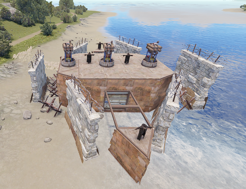The bases are designed with traps/turrets and sams that don't require power or ammo, so please make sure that setting is switched to not required in the RB config.