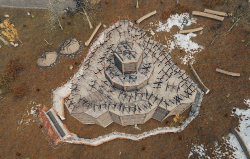 hard raidable base full of gun traps, flame and autoturrets, lots of trap loot rooms and one main loot room which is rammed with good loot like resources, c4, rockets etc.