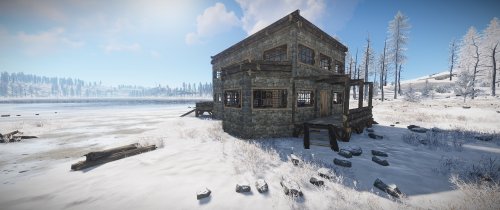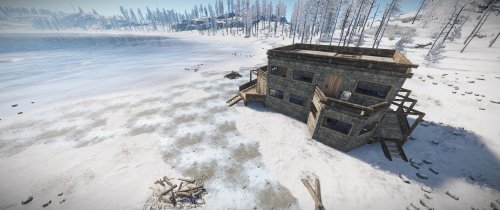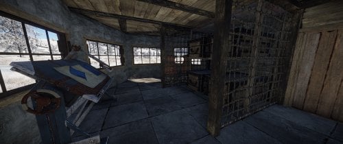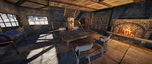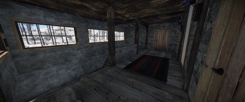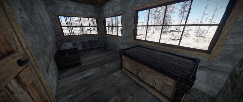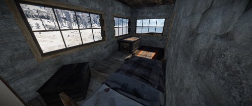 House for 3 role-play/PVE players with 3 separated bedrooms, a big workshop/storage room and a living room. The living room has a fireplace and a small kitchen area. Each bedroom comes with at at least a bed and a big wooden box. All doors leading outside have a unlocked codelocks.