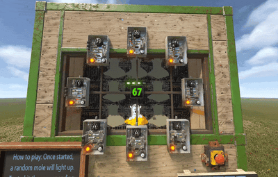 In this game one of 8 moles will be lit up and the player has to press the corresponsing timer fast enough.