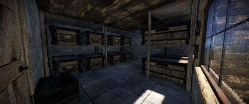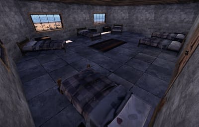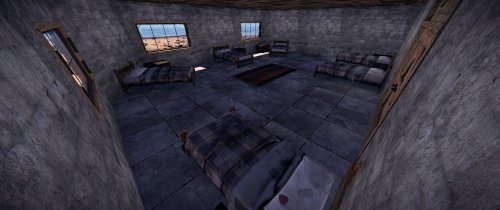 The building 8 main rooms: Garage, dorm, living room/kitchen, workshop, electric room, indoor farming room, furnace room, storage room. Then some tiny rooms where boxes can me added inside.