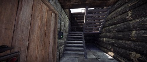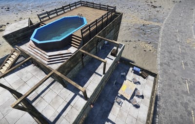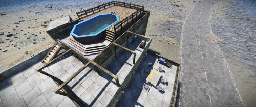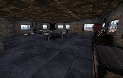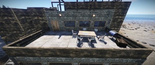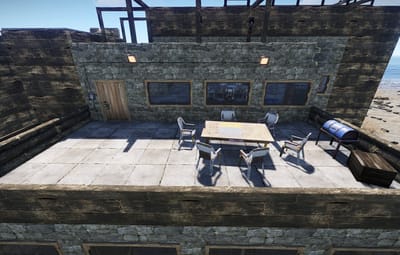 If you're looking for a modern and elegant building for your team on a PVE or RP server, this base is for you! With its 12x6 foundation, this building offers plenty of space, storages and room without sacrificing the design. The wooden parts are voluntary facing inside out for the esthetic. It can easily be transformed into a PVP base since the wooden walls have stone walls preventing an easy access to the base if a raid occur. This building has 3 stairs and one elevator to access to the different floors.