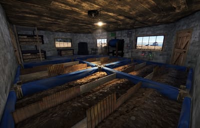 _ Indoor farming room has an automatic sprinkle system that can turn on and off at any time. Two timers allows the players to adjust how much water the plants need.