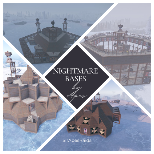 Torture your players with these Nightmare bases that have death around every corner! Tons of sneaky traps and layouts guaranteed to make your players hate you! Hand crafted by the great SirApesALot these bases will leave your players running back naked over and over again, definitely not beginner friendly raids. All of these Nightmare raids cost 52-55 rockets to raid, but bring your skills (and grenades)! Because you will need every raiding trick in the book to conquer these.