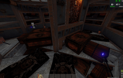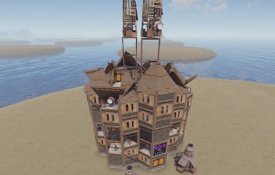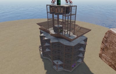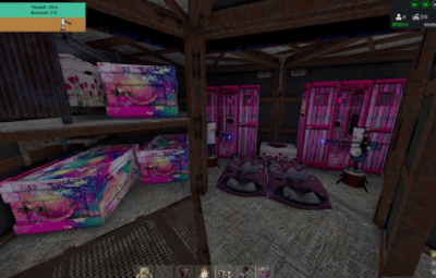 They are all themed with skins (including the building) and are well decorated, so there is no need to use the randomized skins setting if you don’t want to. Depending on the radius of the arena walls, you may need to widen them for some of these bases. There is only one central TC even if the base has spots for external TC’s. There is also no loot hidden in walls.