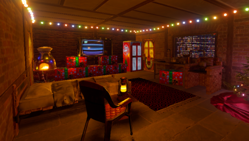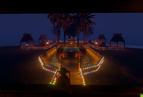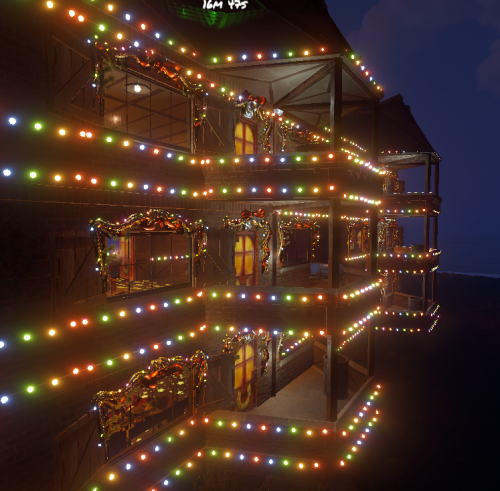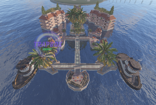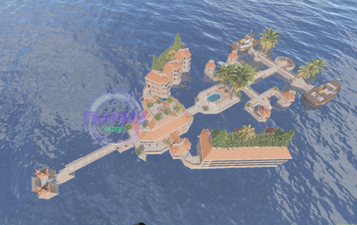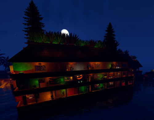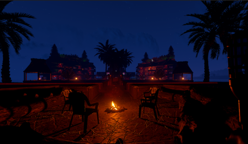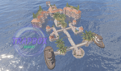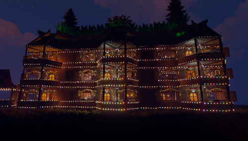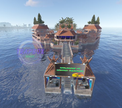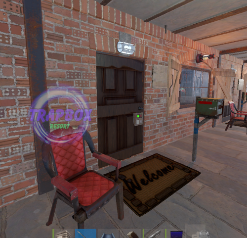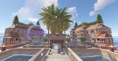 our new resort! We've created a luxurious building that features everything you need for a comfortable stay. Take a dip in the pool, sip on a drink at the bar, or grill up some food with friends on our outdoor grills. Our resort offers multiple levels of living spaces, including a rooftop terrace with breathtaking views of the surrounding area. It's the perfect spot to unwind after a long day of scavenging