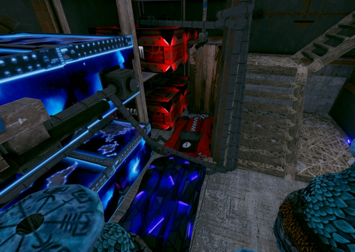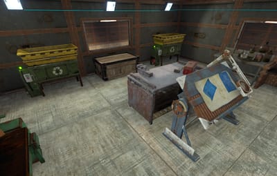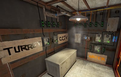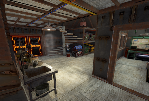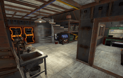 - Resource Storage: Ample space is provided for storing essential resources, weapons, and equipment necessary for maintaining the raidable bases. Each section is secured with code locks and armored walls, ensuring that valuable supplies are always protected.