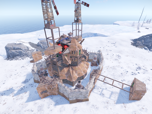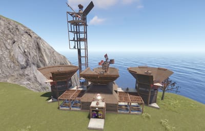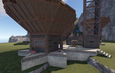 - Aesthetically Pleasing Design: The base’s design is both practical and visually appealing, featuring a rusted metal finish that blends seamlessly with the Rust environment. The base is not only a stronghold but also a statement piece on your server.