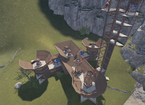 - Four Peripheral Towers: Surrounding the main building are four fortified satellite towers. These towers are strategically placed to provide additional defensive capabilities and storage space. Each tower is equipped with automated turrets and spotlights, making it difficult for intruders to approach undetected.