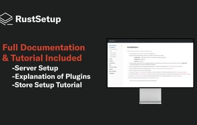 Documentation detailing the installation process is provided. It also includes explanations of the plugins as well as the steps to take if you wish to make changes. Perfect for your first Rust server.