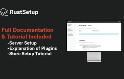 Documentation detailing the installation process is provided. It also includes explanations of the plugins as well as the steps to take if you wish to make changes. Perfect for your first Rust server.