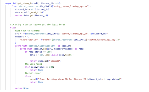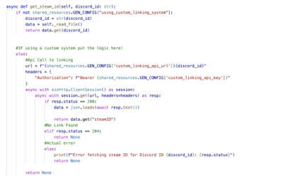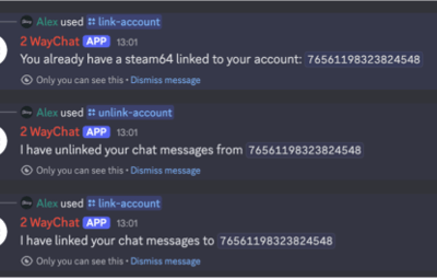 A basic linking system is included (/link-accounts steam64, /unlink) to match the steamprofile to the discord user.