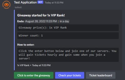 TLDR, You can run a giveaway in you discord that people can enter. When they enter the giveaway they are eligible to start earning tickets.