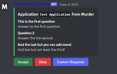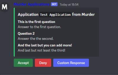 ➤ Able to give a role once user is accepted - The bot is able to give any role to the applicant if they have been accepted