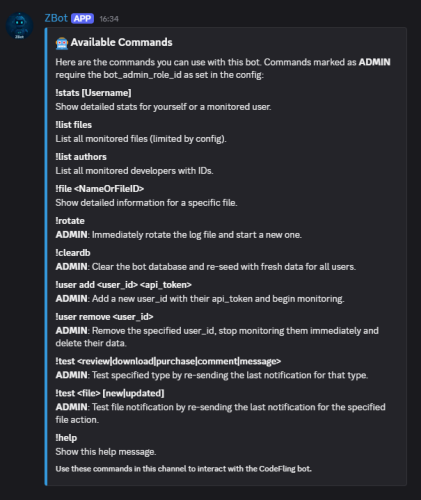 NOTE: Commands by users do not query the CodeFling API every time. They only retreive data from