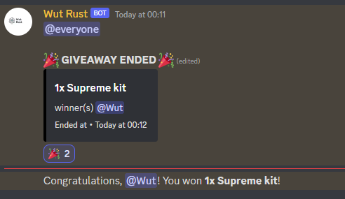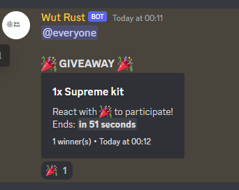 /giveaway <duration> <winners> <prize> <channel it should be sent in> - Starts a giveaway in the given channel - Join message: https://imgur.com/a/ehKqzcQ