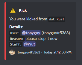- /kick <user> <reason> - Kicks a user, + privatemessage and logging