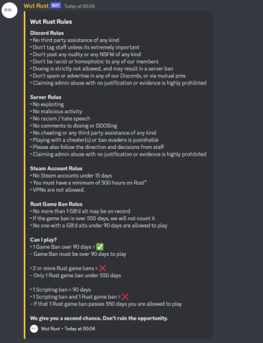 - Rust Player bot - The rust queue and players will be shown as the bot Status