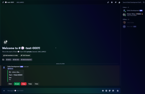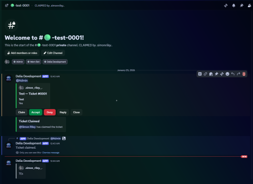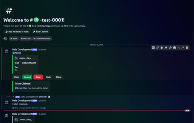 Posts a single panel embed + “Create Ticket” button in the application server.