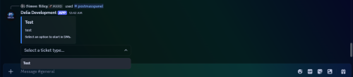 Shows exactly what the mass panel looks like to users (embed + dropdown/buttons).