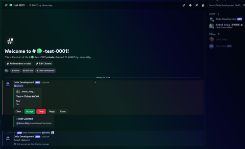 Shows ticket stats for a staff member: claimed and closed counts.