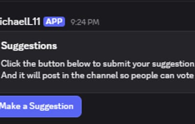 This is a simple discord suggestions bot, using node.js. And it features a button for submitting your suggestions.