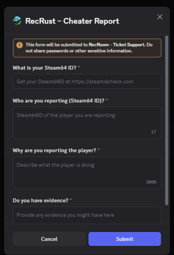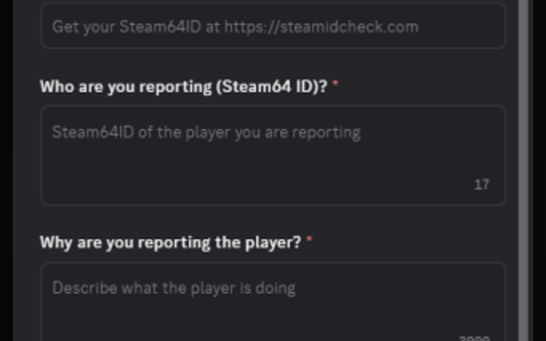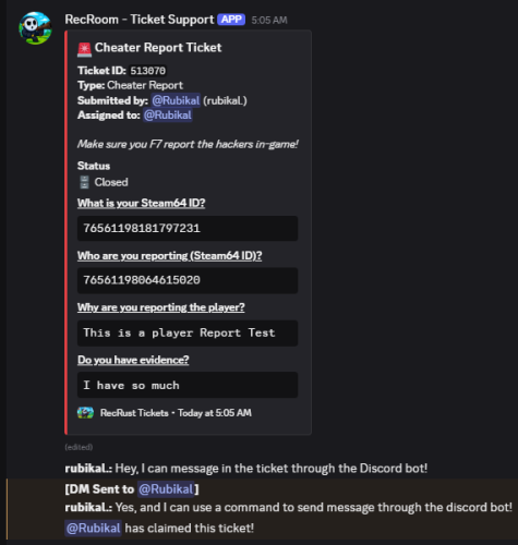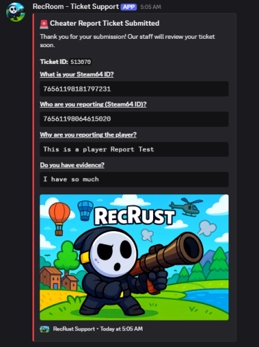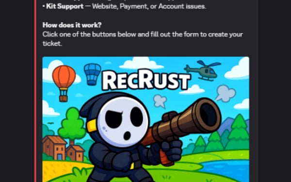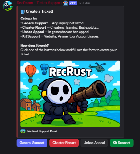 Easy ticket creation via buttons and forms for multiple support types (general, cheater, unban, kit, etc.)