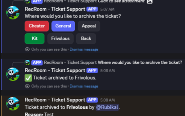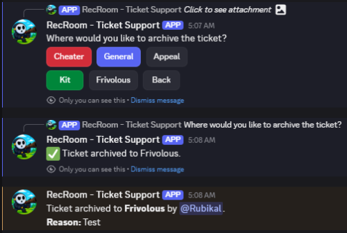 Staff can discuss and coordinate in ticket channels without the user seeing any messages, until staff choose to notify the user
