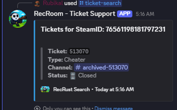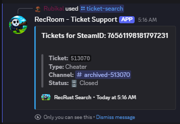 /ticket-search [userId|ticketId] — Search for tickets by user or ticket ID