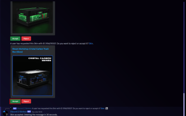 - User-Friendly Interface: Simply send the skin's ID or a Steam Workshop URL in your Discord channel, and watch the magic happen.