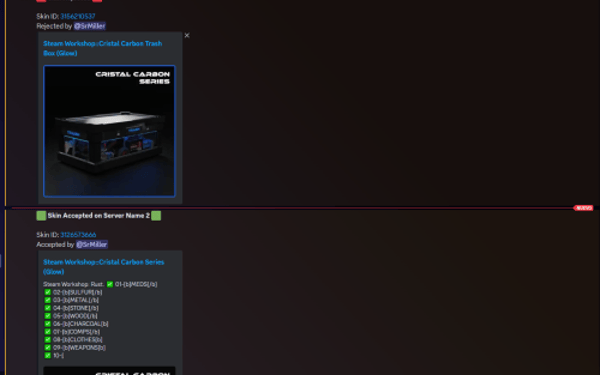 - Effortless Skin Addition: Add skins to your Rust server's Skinbox without leaving your Discord server. No more tedious commands!