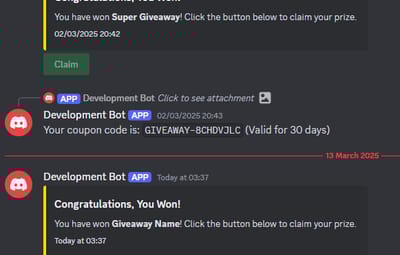 "description": "You have won **Giveaway Name**! Click the button below to claim your prize.",
