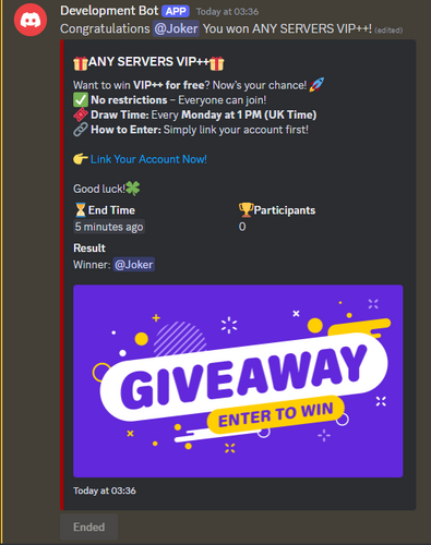 Users join with one click, and winners automatically receive tebex coupons via dm.