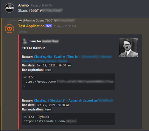 - Able to check to see if a user has battlemetrics bans. It will only be able to see bans that you have access to! (Can be disabled and enabled | Permission required)