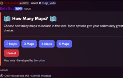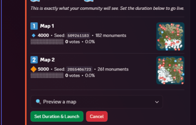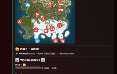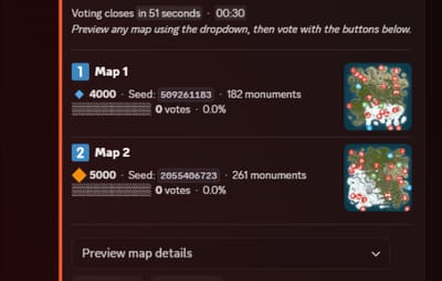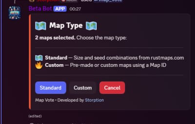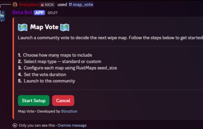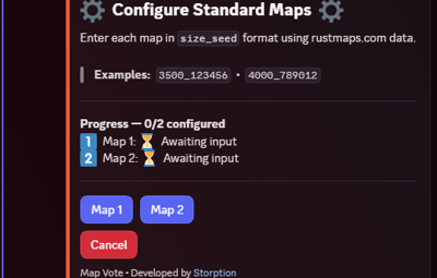 MapVote is a self-hosted Discord bot that lets your Rust community vote on the next wipe map. Built for server owners who want a clean, reliable voting system.