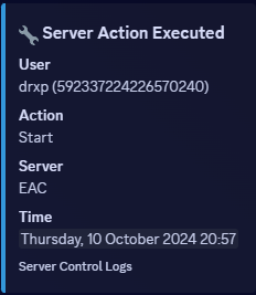 - Allows staff to control the server (start, stop, restart) via Discord buttons.
