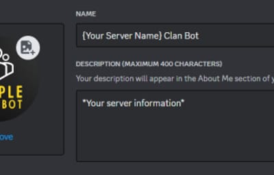 - In General Information upload an icon and give your bot a name and description (Please include "SimpleClanBot by staticDev" in your description)