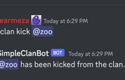 - /clan-kick {user} : Automatically removes the users clan role (they can no longer see the text channel)